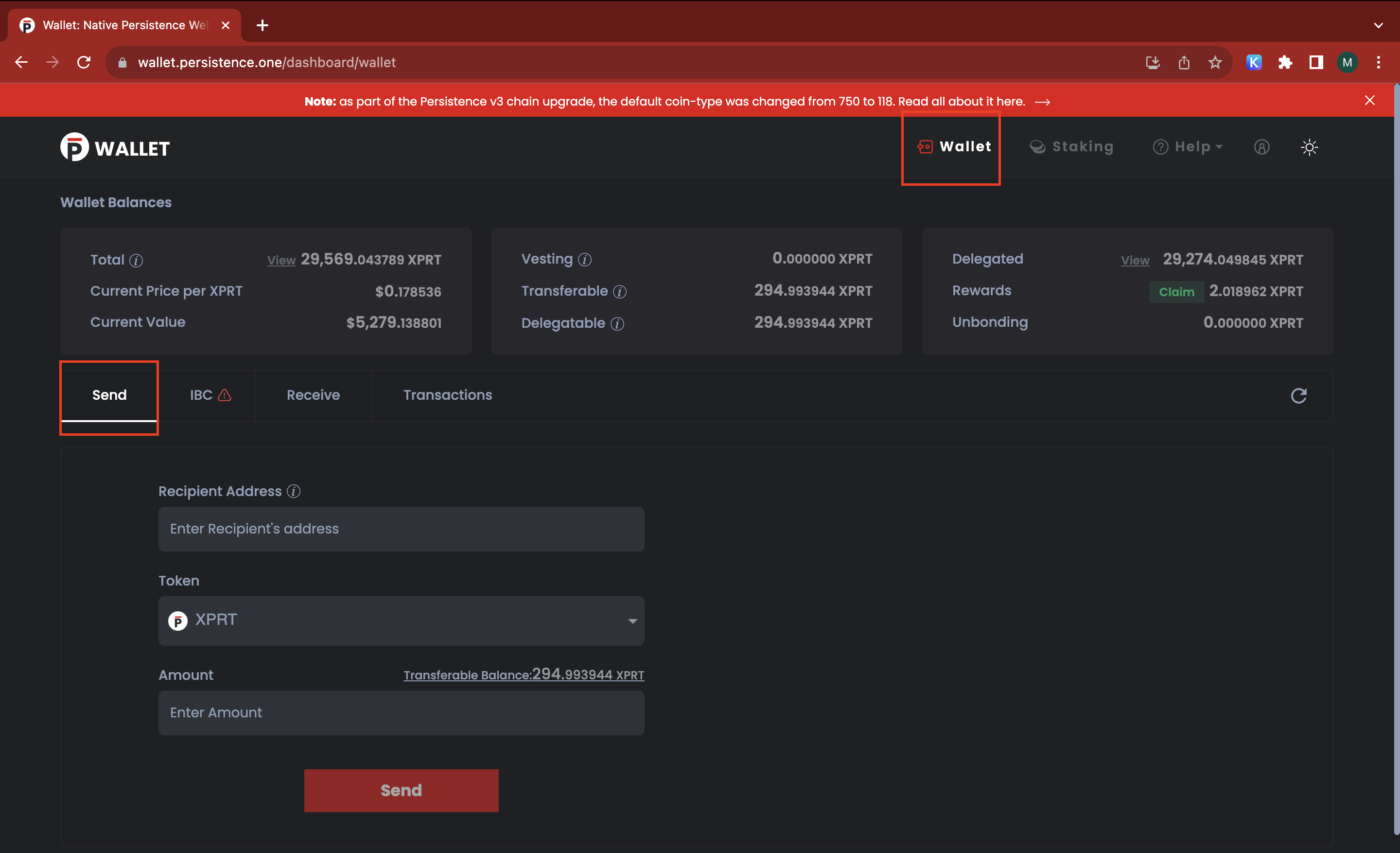 C. Send all the tokens to your new coin-type wallet address which you copied.