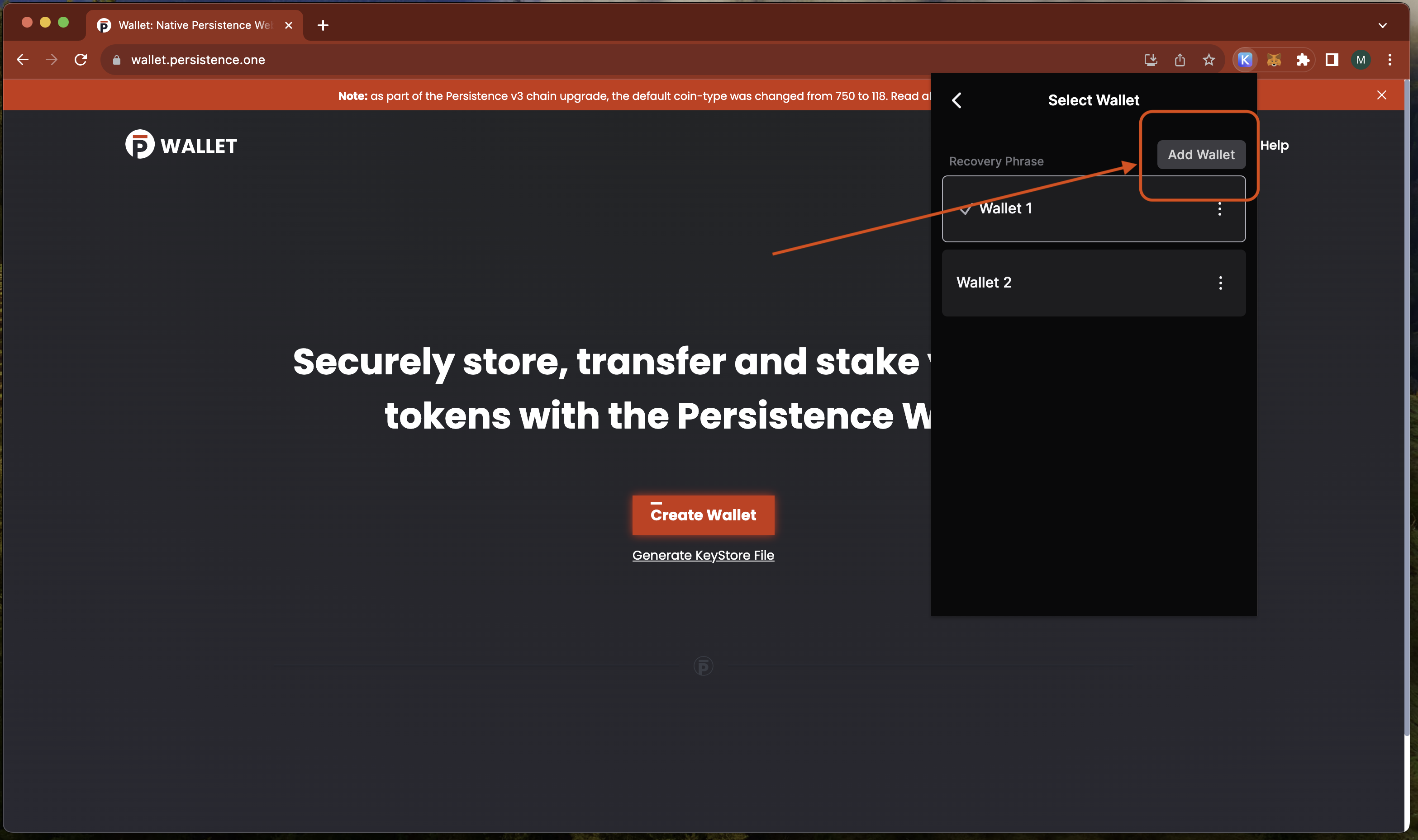 F. Voila! your 118 coin-type persistence wallet address is imported in keplr.